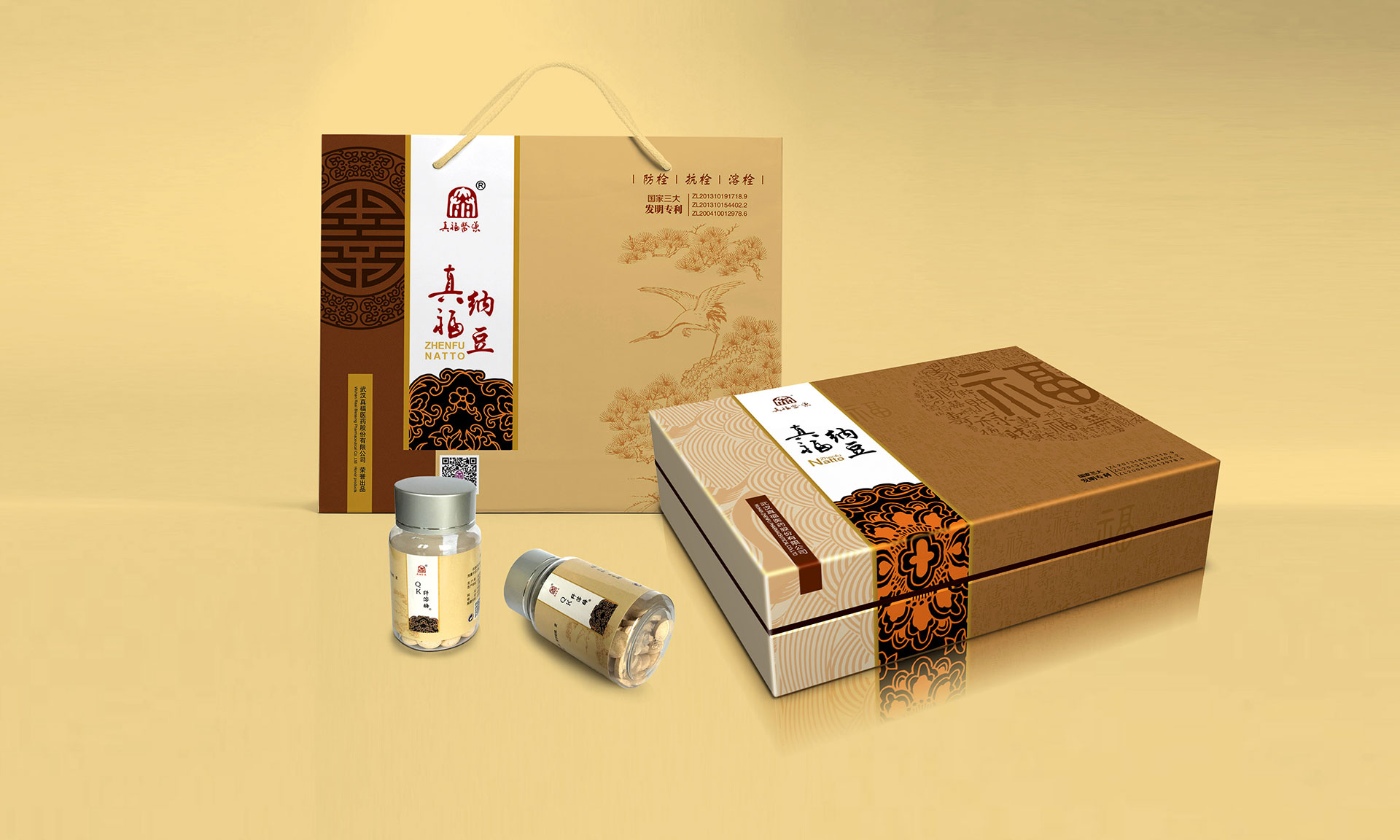 心腦血管疾病是人類健康的頭號殺手,中國人的死亡80%就是心腦管疾病。武漢大學生命科學院通過現(xiàn)代生物技術,在農(nóng)產(chǎn)品大豆中提煉出枯草桿菌研制成的真福納豆,獲得國家三項發(fā)明專利。該產(chǎn)品對緩解和輔助治療心腦血管疾病有著顯著的效果,同時不對人產(chǎn)生任何傷害。是一種綠色健康的產(chǎn)品。信立浩達設計團隊對產(chǎn)品價值深度挖掘,在產(chǎn)品包裝設計上用中國傳統(tǒng)的“福祿壽禧、松鶴延年”文化來表達,同時反復訴求:讓中國人多活十年!這樣產(chǎn)品的價值,通過福壽文化、松鶴文化得到了形象的傳遞,深受中老年人的心理認同。
